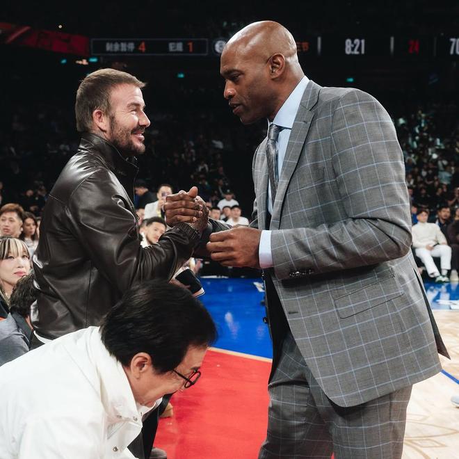 篮网社媒晒出成龙、卡特、贝克汉姆场边合影:三个GOAT